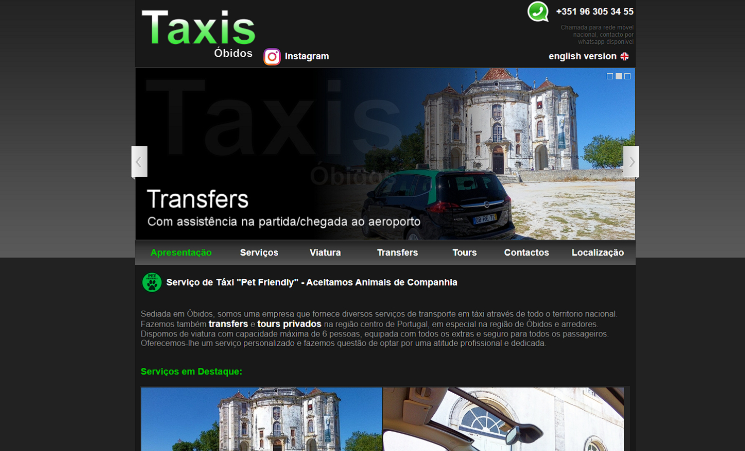 Táxis Óbidos taxisobidos.com Cliente desde 2013 Área de negócio – Empresa de táxis Versão de design – 2.1 Site Web multilíngua Fornecimento de alojamento...