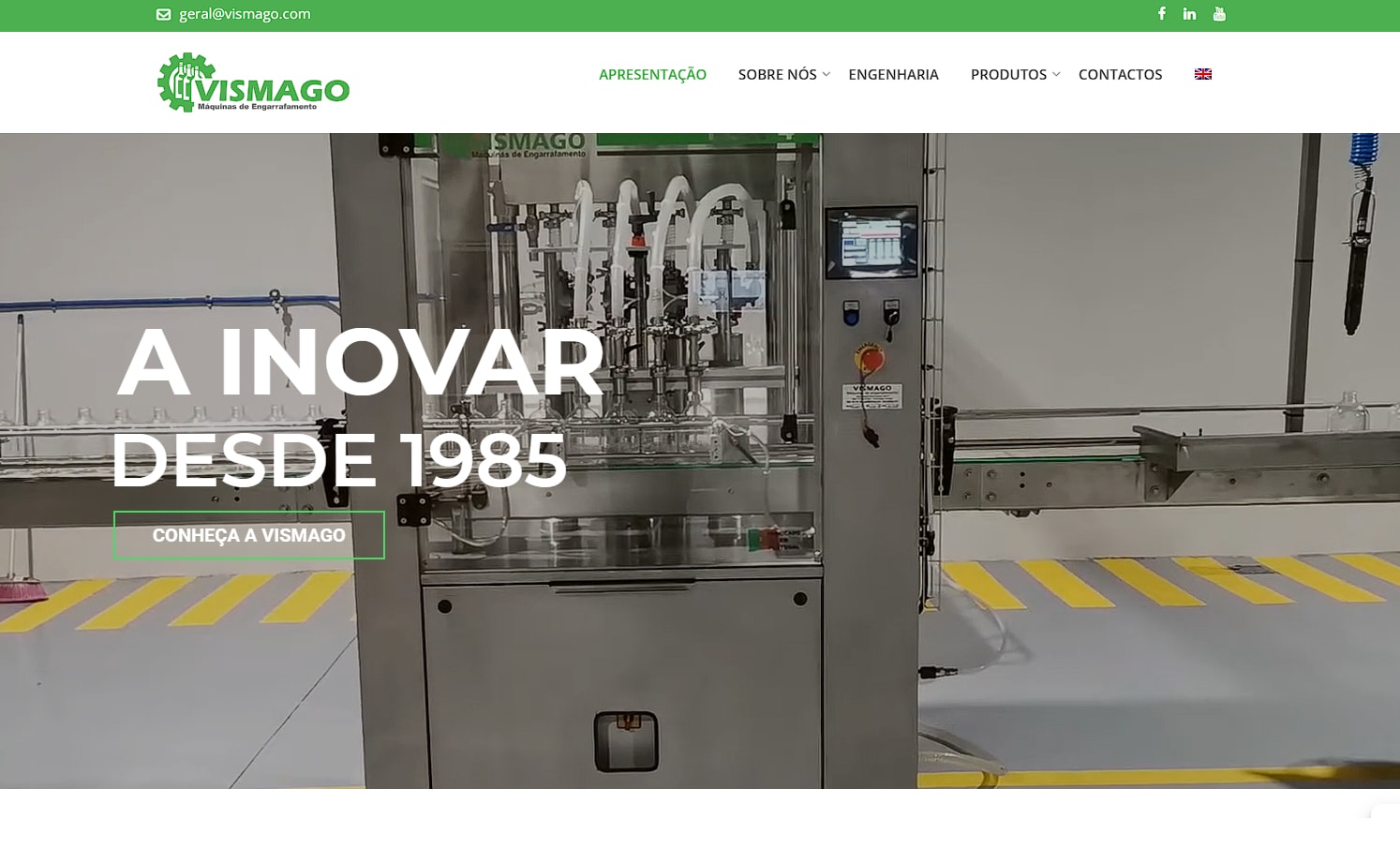 Vismago vismago.com Cliente desde 2018 Área de negócio – Fabrico e montagem de máquinas de engarrafamento Versão de design – 1.3 Site Web multilínguas...