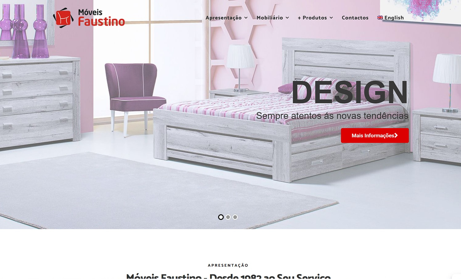 Móveis Faustino moveisfaustino.com Cliente desde 2014 Área de negócio – Comércio de móveis Versão de design – 2.1 Site Web multilíngua Fornecimento de alojamento...
